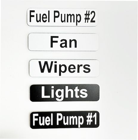 Custom Engraved 2"x1" Label With Adhesive Back. Use for collectible car dash panels, aircraft, RV, radio call signs, machinery and other applications. Totally customizable with permanent adhesive backing. Made in USA.