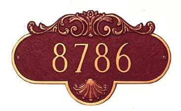 Home Address Plaque - - elongated oval shape with decorative scroll at top and shell shape at bottom measures 15.5" x 9".
