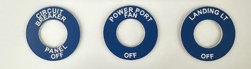 Aircraft toggle switch ring plate customized with anything you wish to say or identify in your cockpit. Adhesive back for simple installation. Made in USA.
