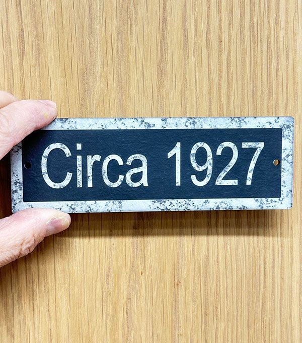 Circa Sign for Historic Home or Building Antique Look - - Are you the lucky owner of a home or building with historic significance? Why not let everyone know approximately when your home or other structure was built with our small size custom circa sign. 6" x 2" wall mount Circa plaque. Made in the USA.