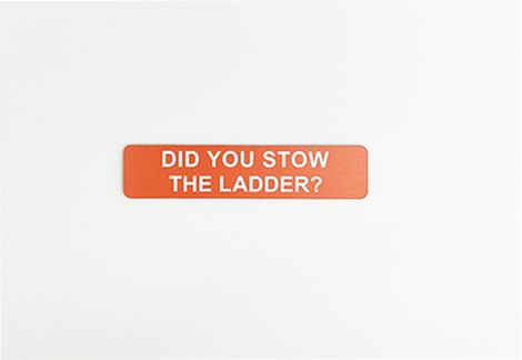 Boat Reminder Label -- Small adhesive sign for your important instruction or reminder such as Did you stow the ladder? Made in USA.