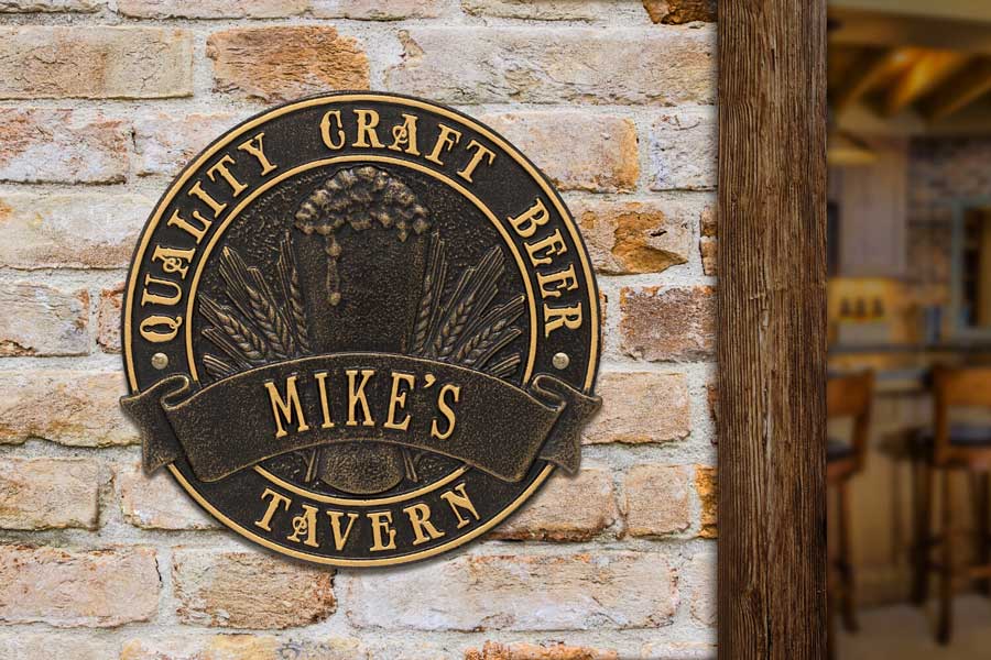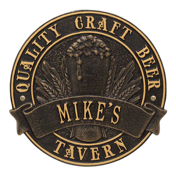 Craft Beer Tavern Plaque - - personalized Quality Craft Beer Tavern sign custom made with the name of the home-brewer or craft beer aficionado. Makes an impressive lifestyle statement for any private bar or man cave. Made in USA.