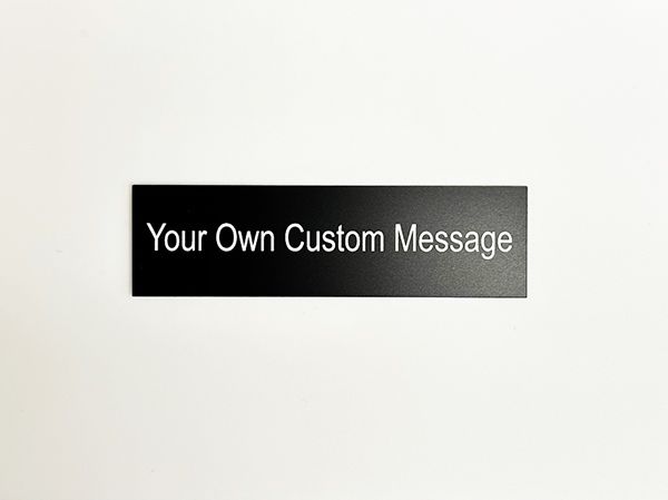 Custom Engraved 3.5"x1" Plate With Adhesive Back. Comfort House labels and plates are used for names, equipment, electrical panels, part identification, voltage, machinery, aircraft, RV, radio call signs, go bags, drones, storage cabinets, drawers, serial numbers, and other applications. For indoor or outdoor use. Made in USA.