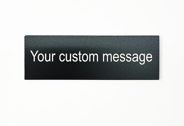 Custom Engraved 2"x1" Plate With Adhesive Back. Our labels are used for names, room numbers, drones, construction equipment, electrical panels, voltage, industrial machinery, aircraft, RV, test kits, radio call signs, and other applications. Totally customizable with permanent adhesive backing. Made in USA.