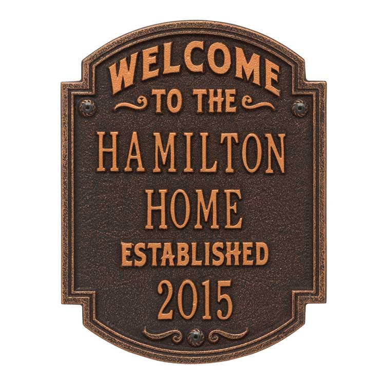- This classic and elegant plaque welcomes guests and marks the year in when the house became a home.