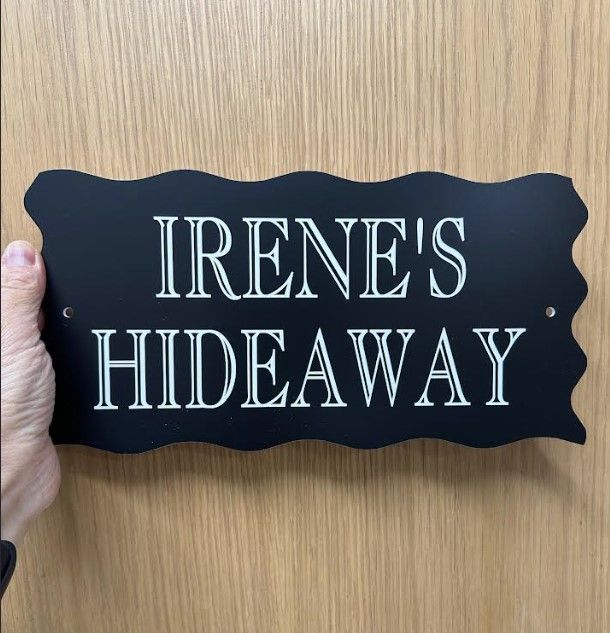 - The unique shape of this wave edge house name plate along with the stunning engraved font will endow your home with special status in the neighborhood.