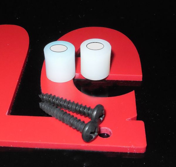 Cut-out, silhouette letters seem to float in the air. The characters are attached to a narrow border (approximately 1/2" high) at the bottom. To add a 3D like appearance, we can supply optional standoffs that support your sign 1/2" away from the wall it is mounted on (sign in example above is mounted with the standoffs).