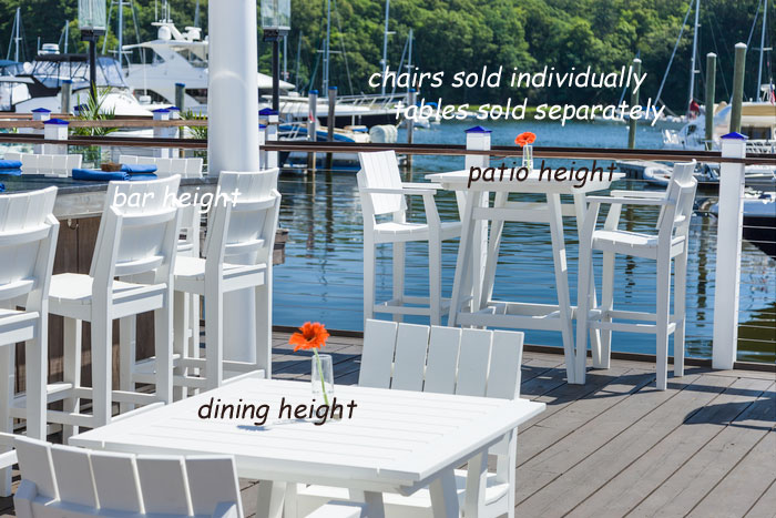 - Chair slat colors: white, natural, green, gray, black, charcoal, navy, sage, slate, chestnut, cherry, pool, leaf, and teal plus the two new premium colors heathered teak and heathered smoke.