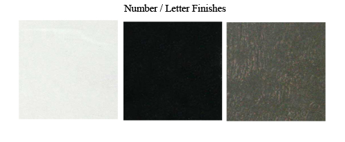Plaque comes in either sandstone or slate finish. Engraved characters in your choice of black, white, or mocha finish. Mounting hardware included.