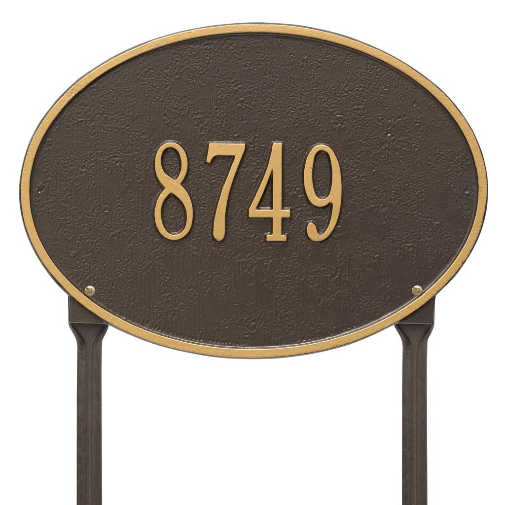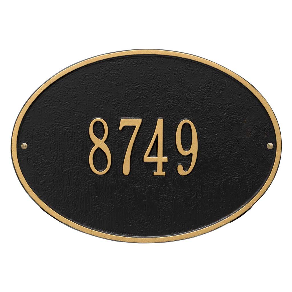 Aluminum Metal Oval Home Address Plaque - - standard size 14.25" x 10.25" personalized house address sign with one or two lines of personalization. Made in USA.