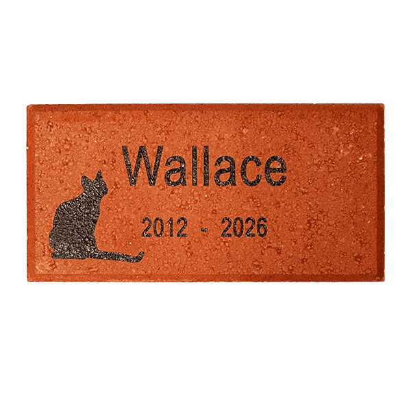 - The brick displays cat's name, birth and death years, and the image shown.