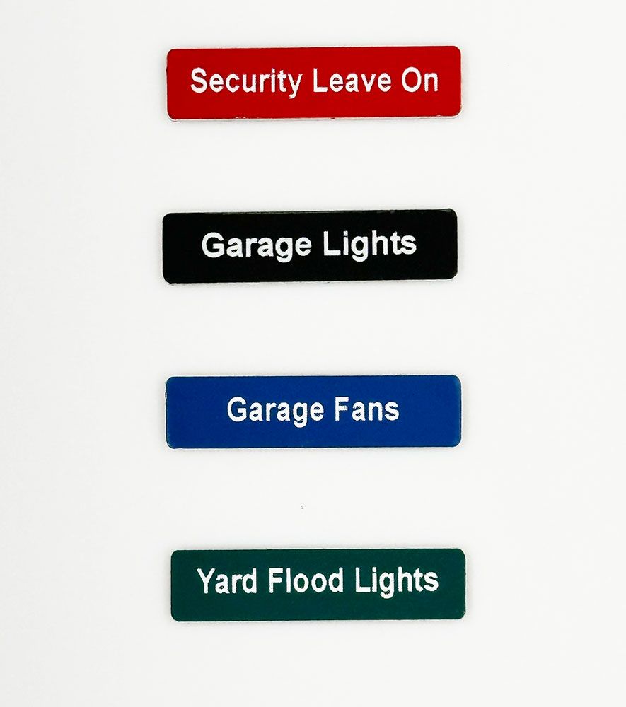 Also referred to as our light switch identification stickers, custom switch plate labels, switch panel stickers, miniature labels, toggle switch labels, id wall plate labels, engraved push button switches, marine panel labels, light switch markers, light switch decals, boat rocker switch labels, auxiliary switch labels, aux labels, panel labels, boat dash instrumentation panel sticker labels, boat console switch labels, custom label stickers, marine labels, breaker panel labels, custom boat switch labels, gauge labels, and guage (misspelled) labels, and lamacoids.