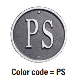 - Color combinations: BG black plaque with gold characters; GG dark green plaque with gold characters; PS pewter silver; AC antique copper; OG bronze gold.