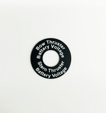 New size toggle switch label 1.25" OD, .5" ID with up to four lines. Customize this ring plate with anything you wish to say such as Under Water Lights, Interior Lighting, Bilge Pump, Stereo, Nav Lights. Adhesive back for simple installation. Made in USA.