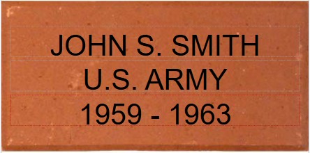 Veterans Memorial Brick with a custom engraved inscription, typically a name, service branch such as U.S. Army, and dates.