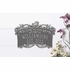 - Large image shown in pewter with silver characters. Smaller images (from left to right) are antique brass, antique copper, black/gold, bronze verde, oil rubbed bronze, bronze/gold, and pewter/silver.