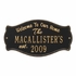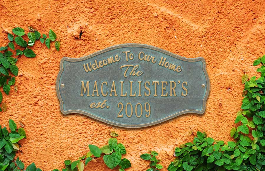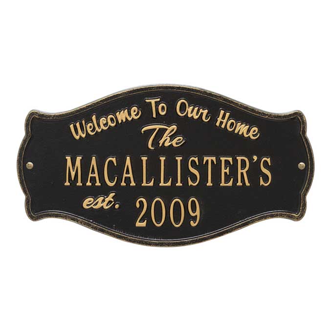 Welcome To Our Home Plaque Personalized With Name and Year Established Date - - a sophisticated sign that welcomes guests and displays the year your family was established. Makes a great personalized housewarming gift, wedding gift, or anniversary gift. 15.5" x 5.75" arched rectangle. Wall mount. Made in USA.